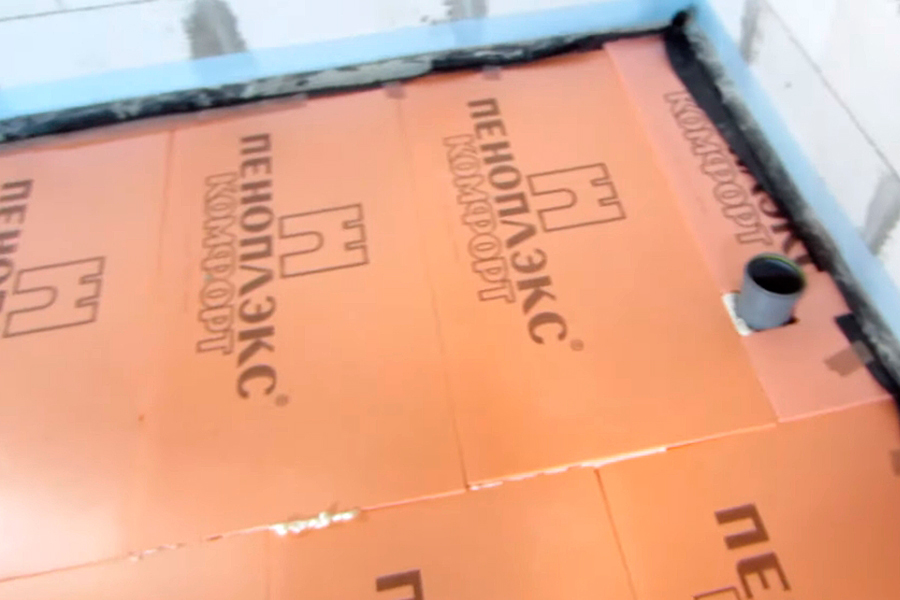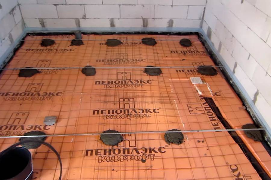 - Затем на утеплитель кладут армированную сетку, поверх которой заливают черновую стяжку или выкладывают керамическую плитку.