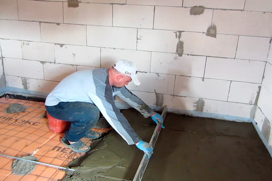 После того как поверхность застынет, выкладывают плитку или делают выравнивающую стяжку.