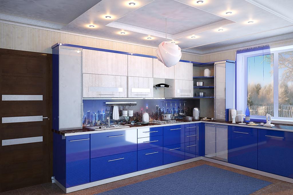 Синий – это всегда элегантно. Ассоциируется со стихией воды. Синий оттенок наполняет жильцов энергией, жизненной силой и бодростью. Подходит для ванной, гостиной и кухни. Сам цвет насыщенный, поэтому комбинируется белым оттенком.