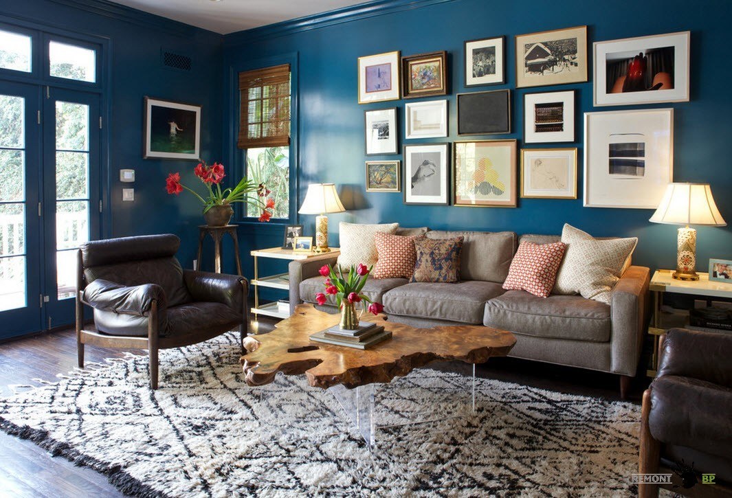 Вот, например Brain Del Toro Incorparated выбрали фон под цвет большого плюшевого дивана, в результате – комната засияла богатым синим оттенком. (от Rikki Synder Photography)