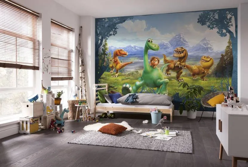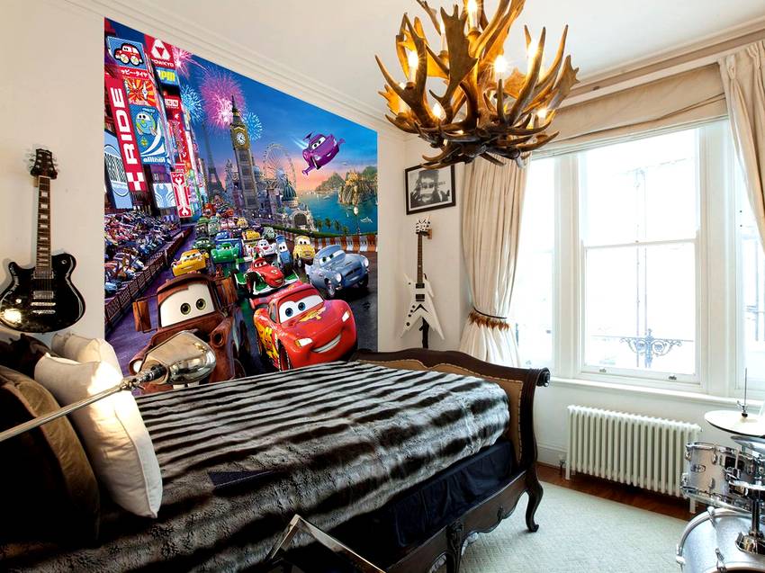 Мальчикам придутся по душе фотообои с машинками (например, из мультфильма «Тачки»), самолетами, поездами, кораблями, динозаврами.