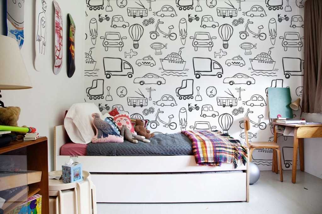 Декор стен обоями в детской комнате