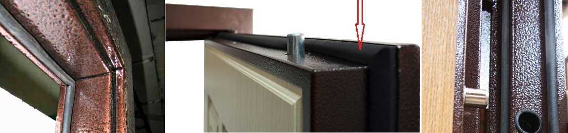 Их крепят по периметру дверной коробки и полотна. Этого вполне достаточно для металлической двери в квартиру. Для двери в дом желательно наличие двух контуров — защита от проникновения холода будет более надежной.