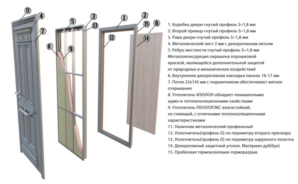 Прочность и надежность двери в той или иной мере зависит от характеристик каждого ее составляющего элемента: