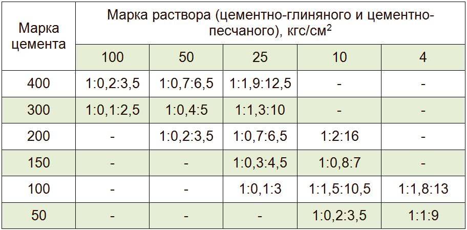 Пропорции цементно-глиняных и цементно-известковых смесей.