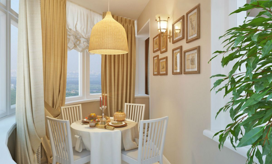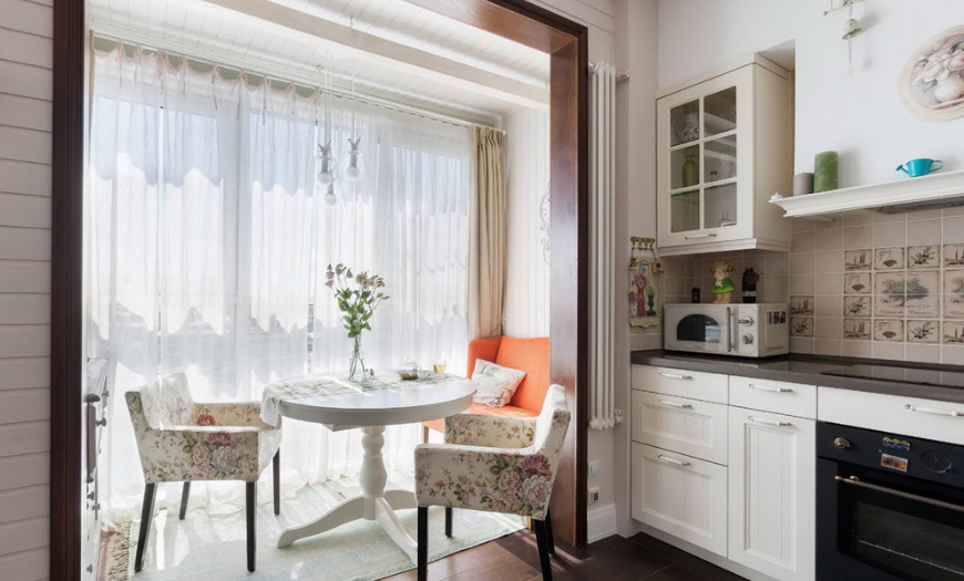 Рабочую кухонную зону на лоджии или балконе сделать невозможно, поскольку проверяющие службы такую перепланировку не утвердят. Однако допустимо обустроить столовую. Это увеличит пространство в малогабаритных квартирах.
