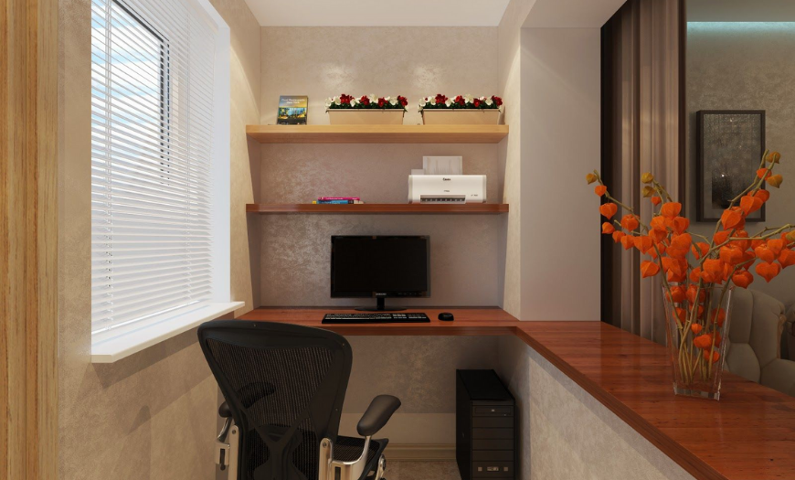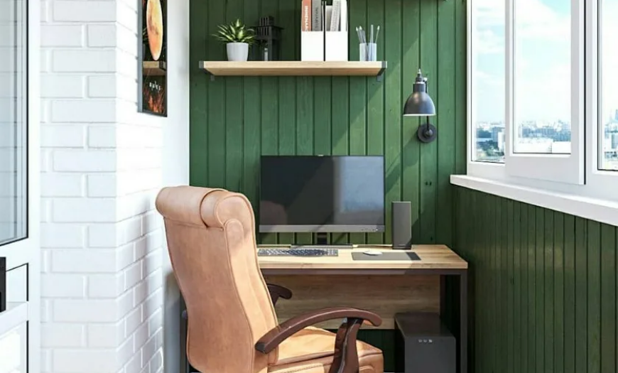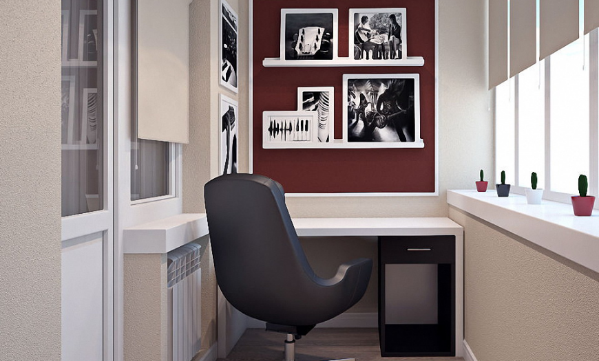 В небольших квартирах недостаточно места для уединения, поэтому лоджия послужит рабочим кабинетом. Главное – утеплить помещение, чтобы спокойно проводить там много времени зимой. Желательно отделать стены шумоизолирующим материалом (можно использовать древесноволокнистые плиты).