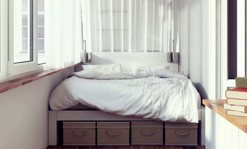 В малогабаритных квартирах стараются максимально оборудовать помещение балкона. Иногда лоджии отводится роль спальни, однако кровать и матрас придется делать на заказ по причине ограниченного пространства.