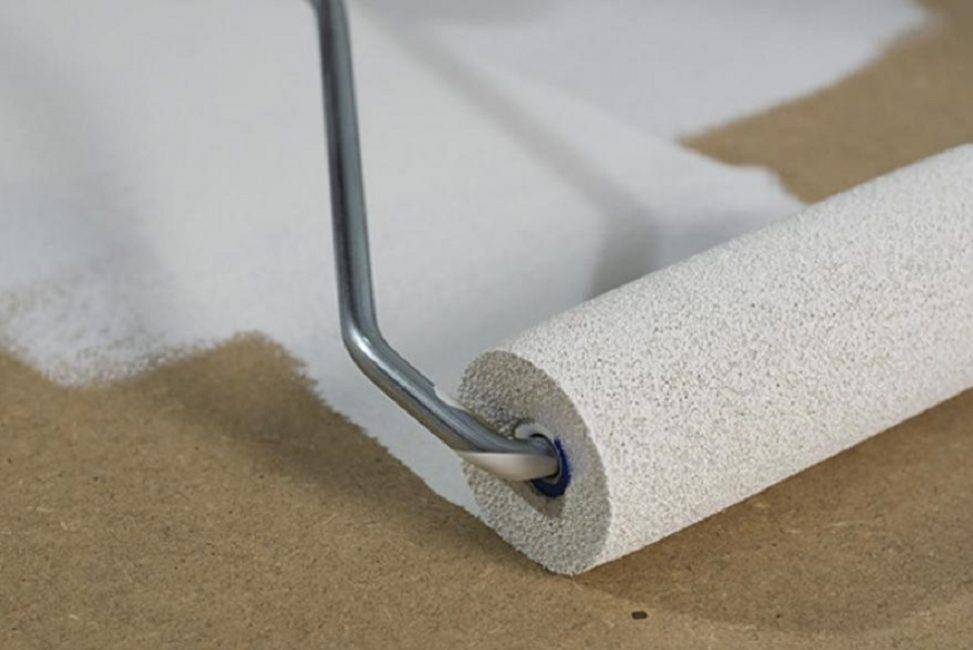 - Наносить грунтовку будем валиком. Иногда им можно нанести первый слой шпаклевки, а после выровнять его шпателем.