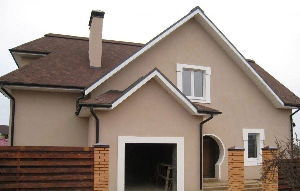Фасад дома покрыт штукатуркой.
