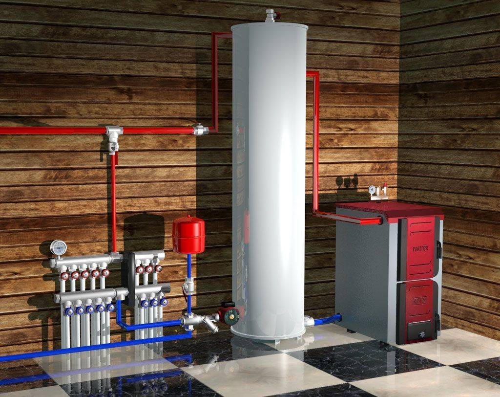 Аккумулятор тепла — бак, наполненный водой. Располагается на дымоходе или подключается отдельно. Во время топки вода в нём нагревается. Затем её используют для бытовых нужд или (реже) идёт на обогрев (после остывания «основной» жидкости в системе). Применение этой технологии делает работу оборудования более эффективной.