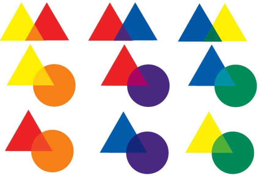 - Желтый и синий — зеленый;