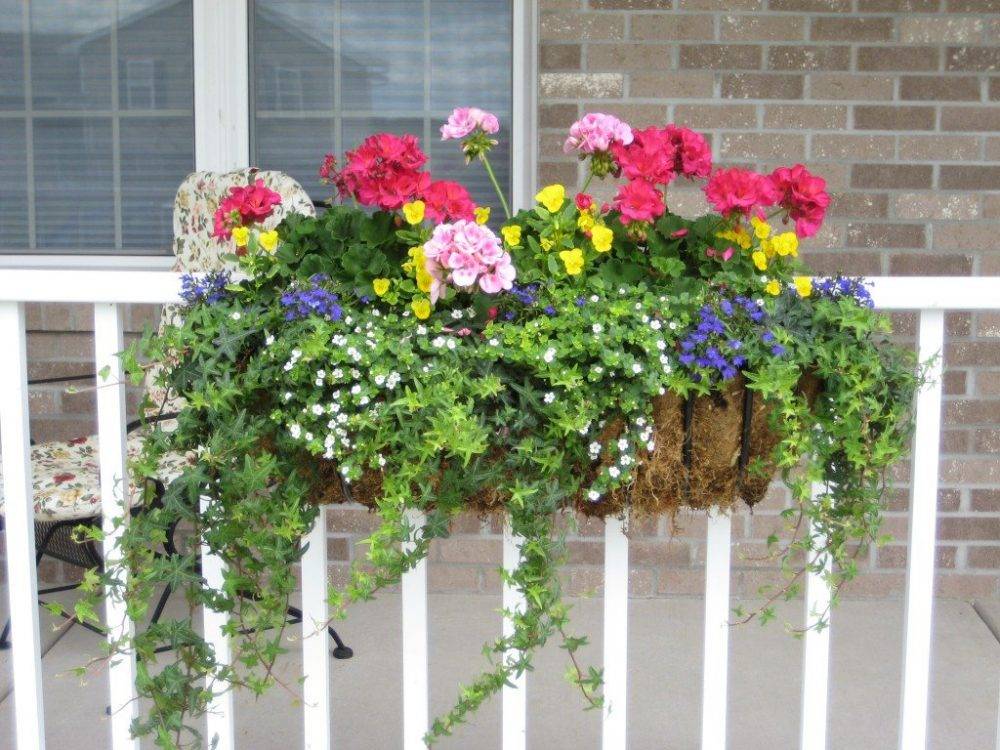 После чего все это сверху засыпают питательным грунтом, но не доверху. Иначе при поливе или дожде земля будет вымываться из ящика. Ящики можно устанавливать на полу, прикрепить с внутренней стороны к перилам.
