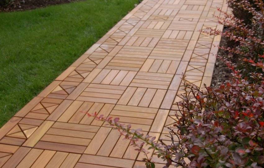 Данная разновидность дорожек широко используется сегодня. Для создания необходимы готовые щиты из досок или композитного материала. Декинг является самым популярным вариантом, который выпускают в виде плиточных модулей или садового паркета. Изготавливают такое покрытие из обычной лиственницы, сосны или древесно-полимерного композита. Чтобы садовый паркет не прогибался, его рекомендуется укладывать на предварительно подготовленную твёрдую поверхность.