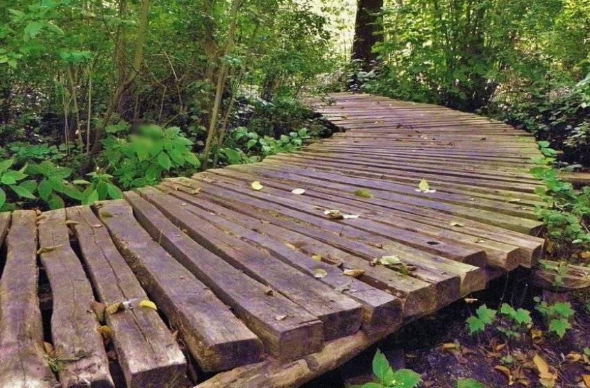 Следует помнить, что пользоваться обустроенной тропинкой придется много лет. Для того, чтобы это сооружение служило долго, необходимо тщательно подбирать материал для его изготовления. Исходным сырьем может служить только сухая древесина без трещин и признаков гниения.