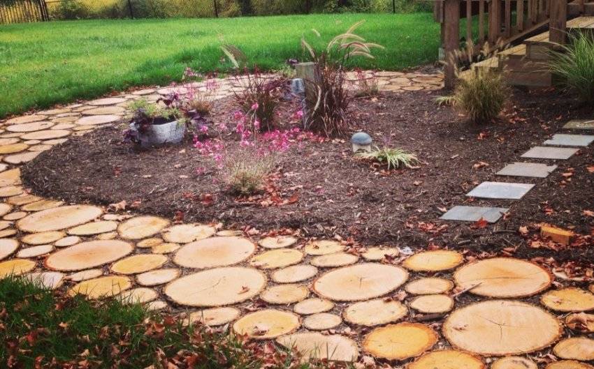 И прекрасное дополнение к такой ностальгической красоте — дорожки из спилов дерева.