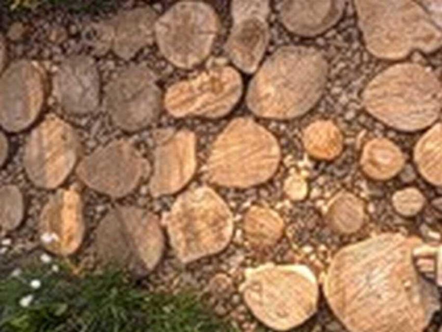 Красиво и оригинально смотрятся тропинки из спила или среза лиственницы, они всегда притягивают взгляд посетителя. Мостовая выполняется из равномерных отрезков брёвен неодинаковой толщины.
