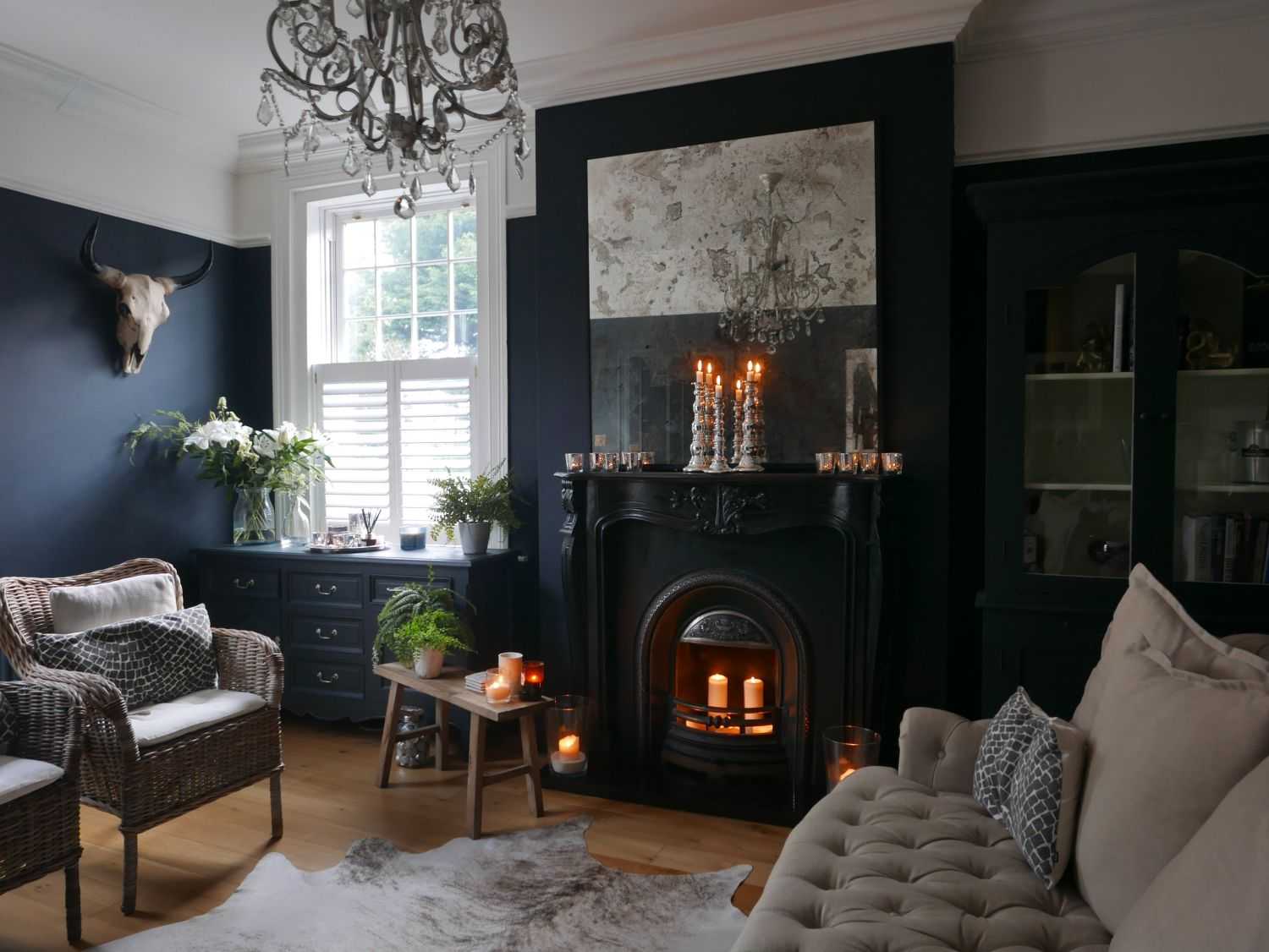 Телевизор в подобном интерьере нежелателен, его лучше спрятать в шкаф с массивными дверками, стоящий у стены, или в типично английский комодик из орехового дерева.