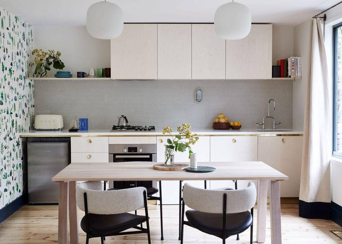 Пастельные оттенки обоев прекрасно вписываются в интерьер кухни