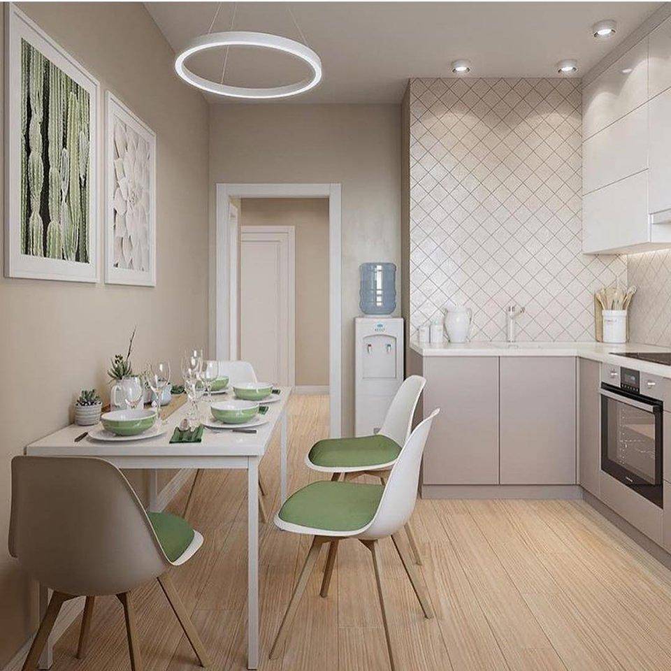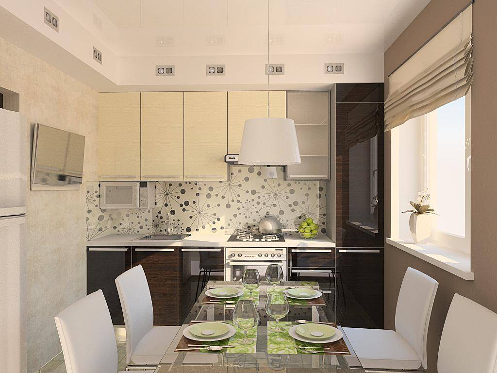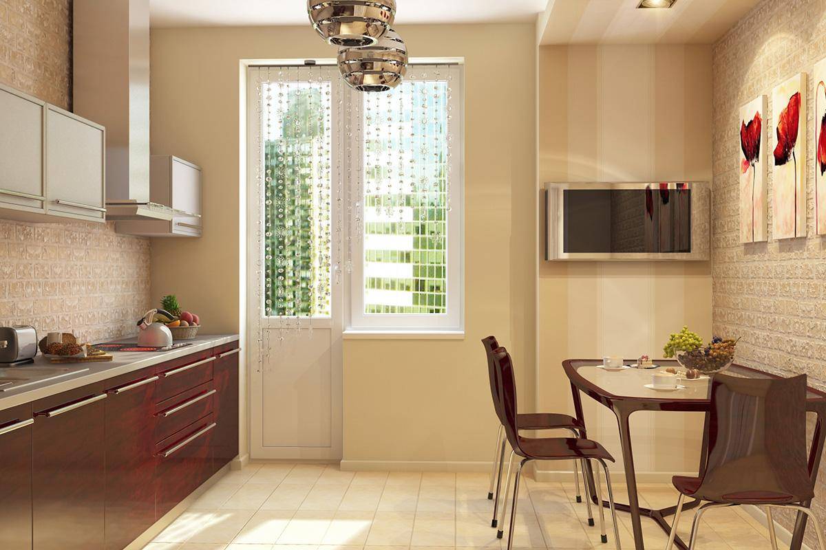 Орнамент и рисунок на обоях должны гармонировать с планировкой помещения. Тоже относится и к цветам. На узкой вытянутой кухне актуально оформить длинные стены светлыми оттенками, а короткие — темными. Это позволит сделать помещение визуально более квадратным. Цветом можно выделить обеденную зону, выполнив ее в более яркой и сочной цветовой гамме, стимулирующей аппетит. А рабочую зону можно выполнить в естественных цветах — зеленый, кремовый, карамельный.