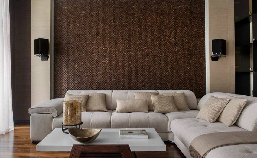 - Шоколадный. Коричневый зачастую используют для игры на контрасте, лишь в редких случаях выбирают в качестве основы. Темный оттенок лучше всего подходит для большой гостиной.