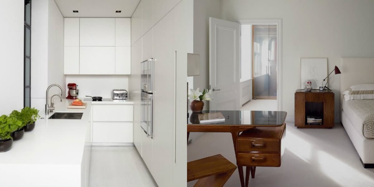 Белый, как основной цвет, в своих мягких оттенках – вот ключевой персонаж минималистического интерьера. Он эталонно адаптируется к любому помещению, легко комбинируется с многими акцентными цветами, буквально из ничего создает простор и воздух.