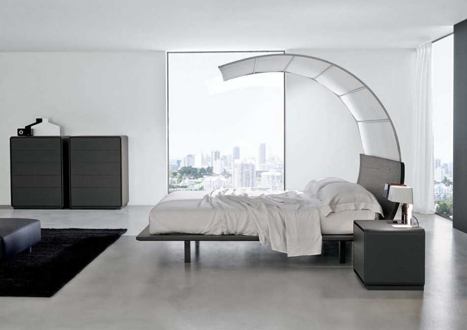 - Кровать — даже для постели надо выбирать сдержанные конструкции, причем желательно, чтобы они располагались на небольшом подиуме. Свободное пространство под кроватью может применяться для хранения разных предметов. Не разрешается устанавливать высокое или фигурное изголовье;