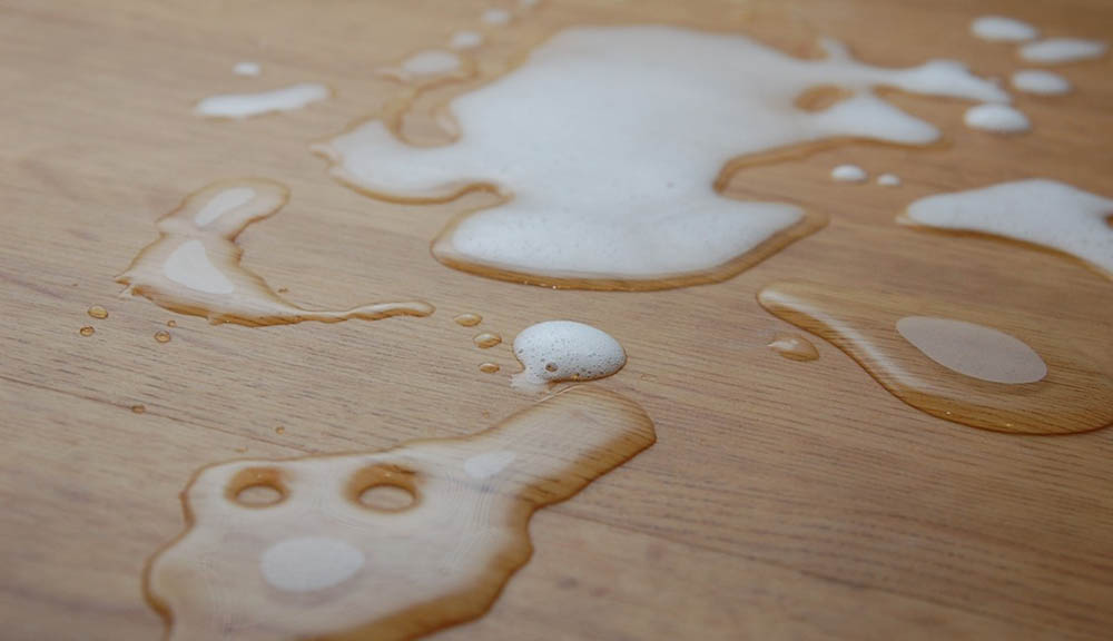 - Блокировать влагодоступ к торцам и подложке покрытия напольного типа. Пролитая вода или потекшая стиралка на неводостойком полу из ламината будут не страшны. Поверхность лицевого типа у всех ламелей защищается полиэфирной или полиуретановой пленкой, а стыки блокируются особым клеем-герметиком для ламината.