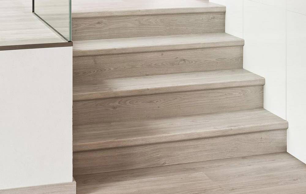 - Для соединения покрытий пола, находящихся на разных уровнях (например, лестничные ступеньки или подиум), используются угловые профили.