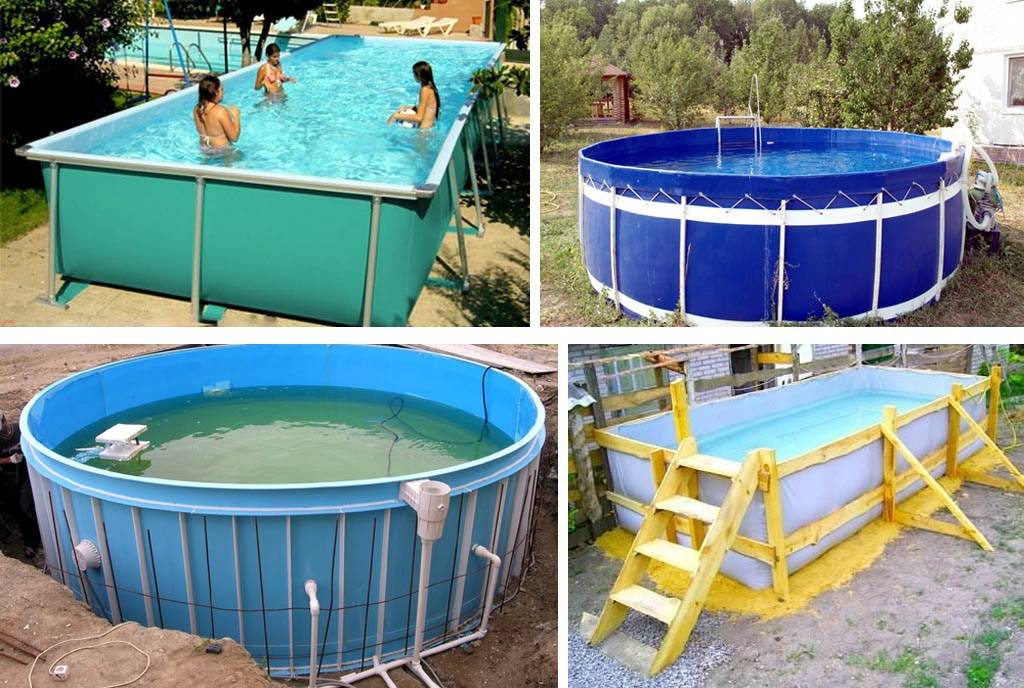 Материалы, из которых изготавливают бассейны для приусадебных участков, зависят от типа конструкции. Каждый вид имеет свои плюсы и минусы. Рассмотрим основные варианты: