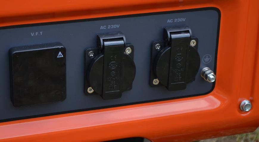 Кроме двух розеток с однофазным током 220 В, агрегает имеет в арсенале выход 12 В.