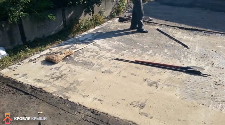 Все работы должны проводиться в теплую сухую погоду. Если старый настил в плохом состоянии, то он демонтируется. При необходимости выполняется новая цементно-песчаная стяжка. После этого настает черед битумного праймера, специального раствора с высокой проникающей и смачивающей способностью. Он быстро высыхает, сокращая время работ. Наносится он по всей площади кровли при помощи кисти или валика.