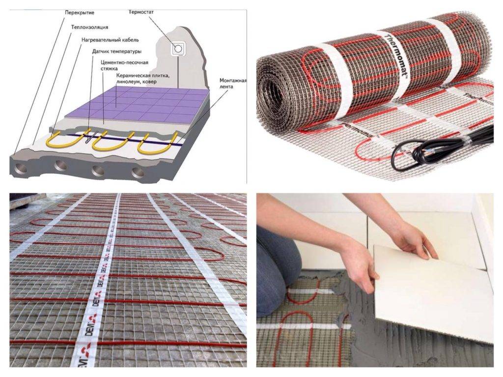 Если в качестве источника тепла будет использоваться электрический кабель, порядок монтажа будет несколько отличаться. Предлагаем познакомиться с последовательностью выполнения работ: