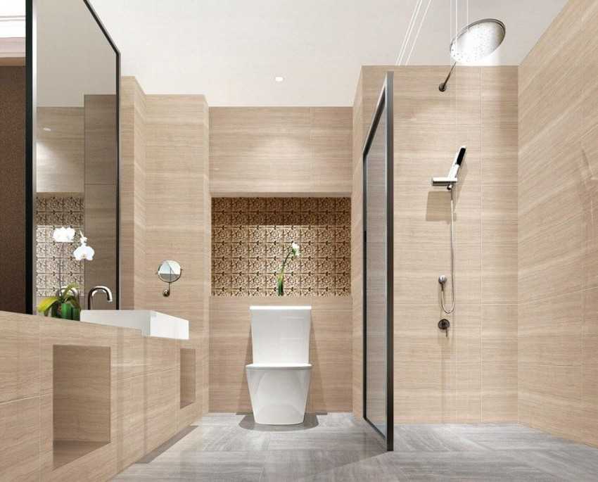 Для оригинального оформления и выделения функциональных зон чаще всего используется сочетание плитки с отличающейся фактурой. Кроме того, ее применение поможет нивелировать некоторые минусы отделки.