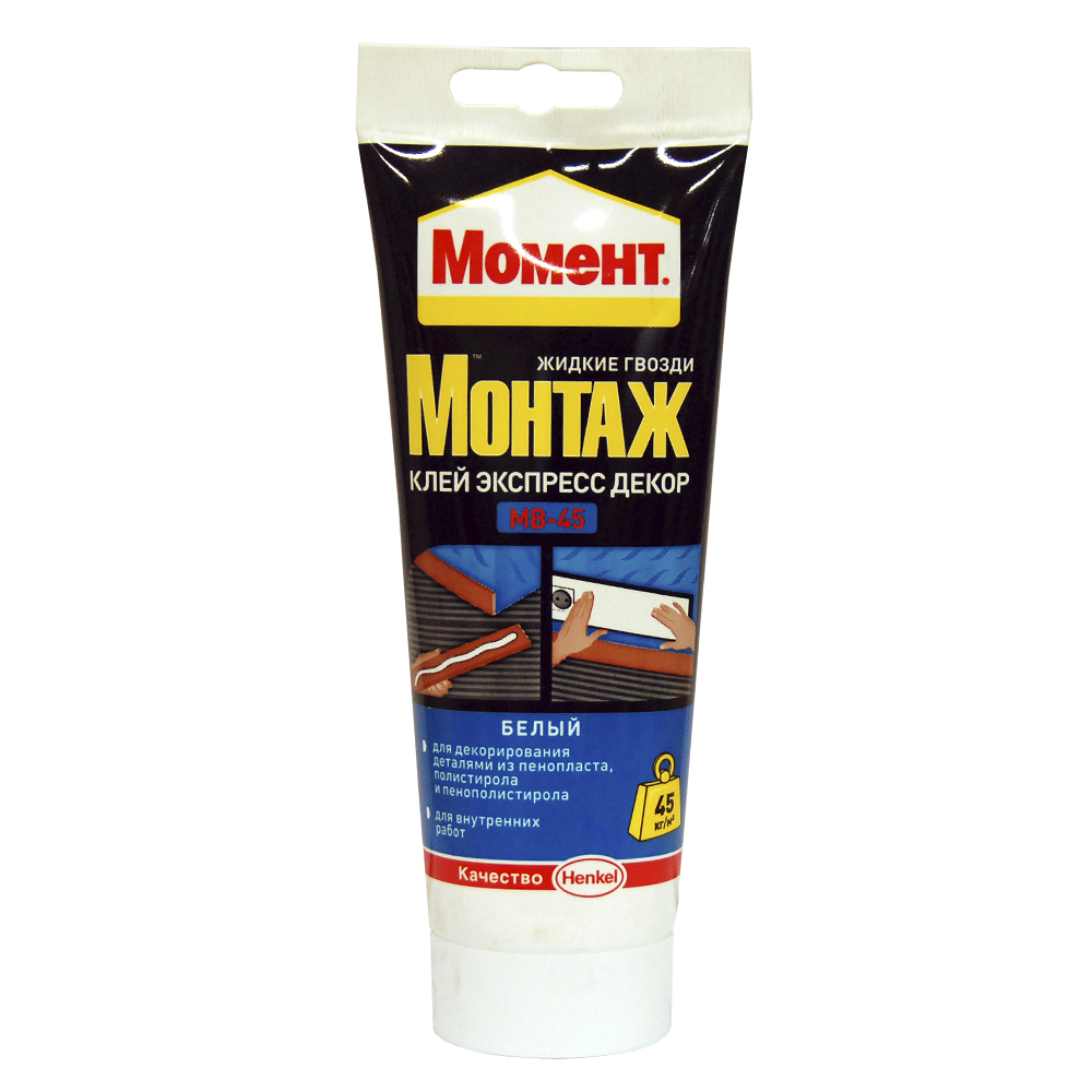 - «Экспресс МВ-50». Этот клей относится к группе акрилатов, о чем говорит сокращение МВ. Поэтому он отлично подойдет для работы с разным сырьем, таким как дерево, металл, пластик, гипс, керамика и прочее. Его можно использовать для внешних и внутренних работ. Этот клей применяют при монтаже декоративных изделий, установке плинтусов и подоконников. Единственное, что нужно учитывать в работе – это один из склеиваемых материалов, неплохо впитывающий влагу.