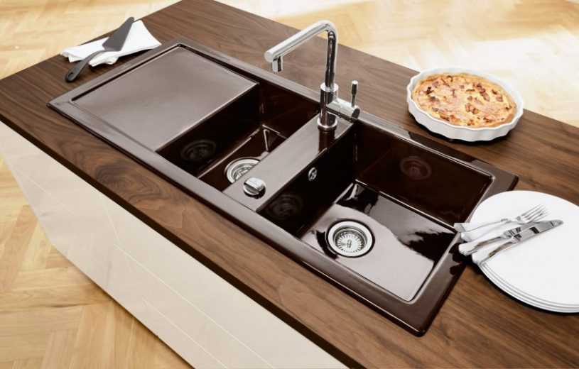 4. Кухонные сантехнические приборы оснащаются множеством «удобств». В конструкции шириной от 14 до 140 см может быть 1 универсальная чаша глубиной от 19 до 90 см или еще 1 либо 2 емкости размерами поменьше. В последнем случае почти одновременно доступно мыть тарелки, ополаскивать зелень и размораживать мясо.