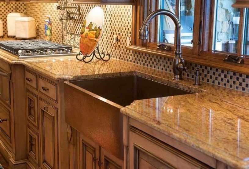 Раковины для кухонных комнат, которые сделаны из натуральных материалов (мрамора, гранита и оникса) выглядят потрясающе, но очень дорогие. Как правило, каменные мойки делают штучно, а не целой линейкой, только по индивидуальным заказам. Они почти бесшумные, долговечные и достаточно прочные, не бьются и царапаются, но недостаток заключается том, что они очень тяжелые, дорогостоящие, и требуется покупка дорогостоящих особых уходовых средств.