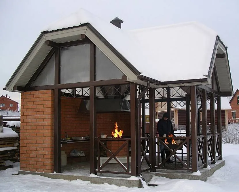 Чаще всего беседка становится закрытого типа. Так что её можно спокойно использовать и в зимний период.