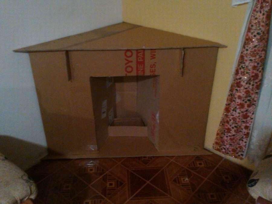 - Можно обклеить поверхность бумагой, чтобы она была без изъянов. Иначе картону сложно придать гладкость, ведь его нельзя затереть.