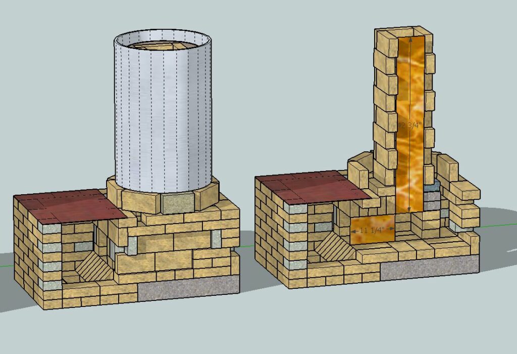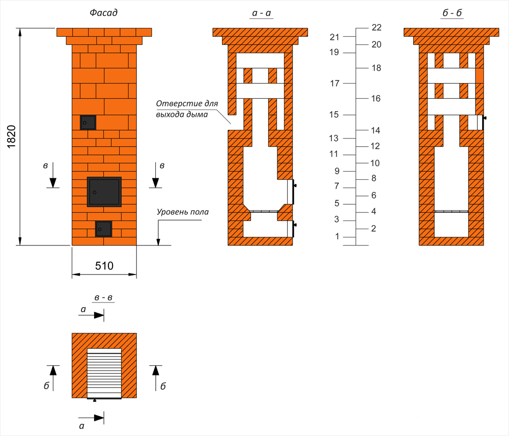 Если же говорить о достаточных размерах колосника и сечения дымоходной трубы, то оба могут быть приблизительно равны площади одного стандартного кирпича. Этого достаточно для нормальной тяги.