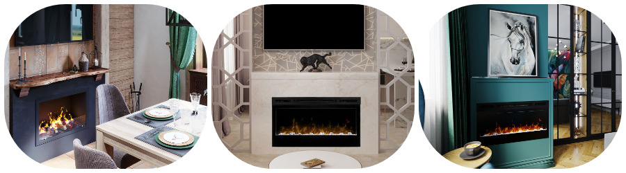 Встраиваемые модели сегодня не менее популярны, чем классические. Это объясняется тем, что благодаря установке камина в стенную нишу можно сэкономить пространство. Выглядят такие модели очень эффектно. Для их монтажа необходимо предварительно сделать в стене нишу, куда должен монтироваться очаг. Встраиваемые модели электрокаминов бывают с подсветкой, цвет которой можно выбирать по настроению, а вместо дров в очаге могут лежать акриловые кристаллы, которые также меняют цвет. Помещением для таких каминов может служить обычная гостиная или столовая.