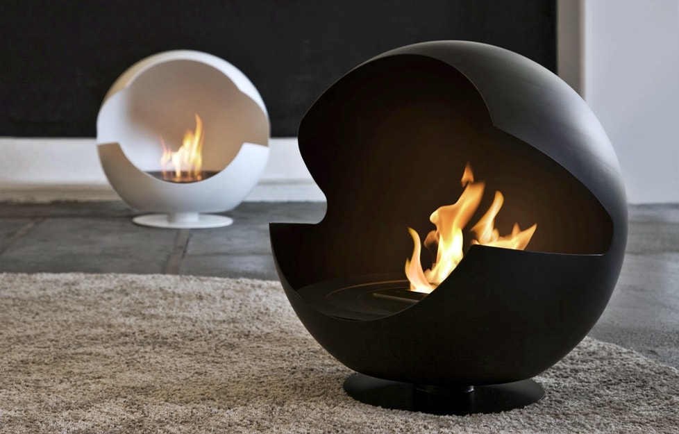 - – шар – очаг в виде сферы, который может быть либо напольным, либо подвесным. Бросается в глаза, отличается нестандартностью и применяется в современных интерьерах.