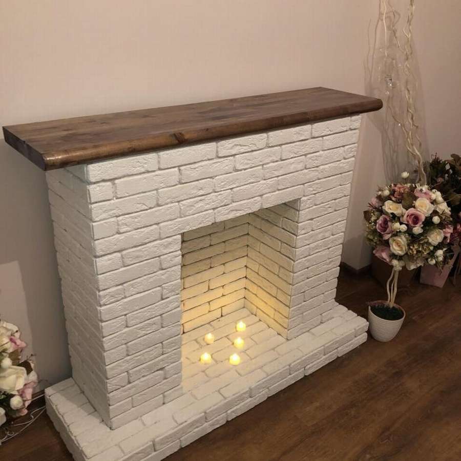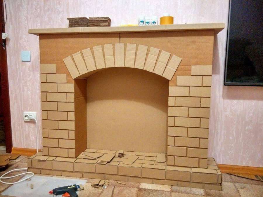 Декорирования можно провести любым удобным для вас способом, например, использовать пенопласт и далее, вырезая из него прямоугольники, имитирующие кирпичи. Неровный пенопласт придаст внешнему виду самодельного камина натуральность. В дальнейшем такой камин из картона можно покрасить надлежащим образом и установить в подходящем месте своей квартиры.
