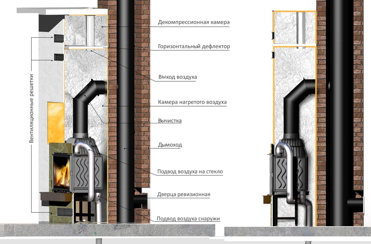 При долгом протапливании камина происходит сильный нагрев задних стенок трубы, в результате чего может начаться пожар, в доме, построенном из дерева. При таких условиях должно быть обеспечение противопожарных мероприятий.