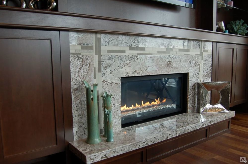 Использование натурального камня для облицовки камина поможет выгодно продать дом в случае необходимости. Красота массивного сооружения, цена материала и работы существенно повлияют на конечную стоимость жилища. Элегантный мрамор, монументальный гранит только подчеркнут роскошь вашего дома.