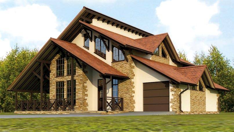 Отделка применяется такая же, как для домов из давно известных нам материалов: штукатурка, покраска, сайдинг, блок-хаус и пр. В архитектурном отношении каркасный дом никак не отличается от проектов зданий выполненных из каменных материалов, и практически любой из них можно использовать для строительства каркасного дома.