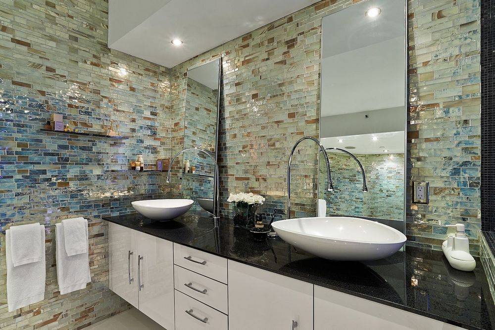 Крупные плитки, безусловно, в тренде. Особенно сейчас, когда дело касается пола. Если вы решите пойти в этом направлении, то можете использовать одну и ту же плитку, только меньших размеров, в другой зоне ванной комнаты. Например, если у вас на полу есть плитки величиной 12×24, разбавьте его дизайн размерами покрупнее, например 2×2. Таким образом, пространство станет не только визуально больше, но и интереснее.