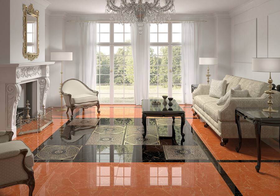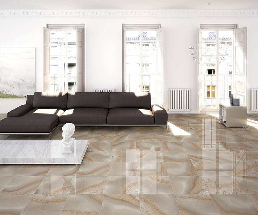 Керамогранитный пол в интерьере гостиной