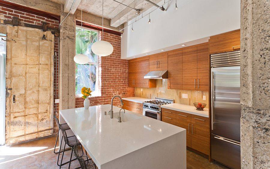 Отделочный материал этого типа является отличным дополнением к кухне в индустриальном стиле. Эстетика лофта родом из Великой депрессии в США, когда заброшенные постфабричные помещения были превращены в жилые. В результате для лофтов характерны элементы декора, типичные для заводов того времен — бетон, стекло, металл и кирпич.