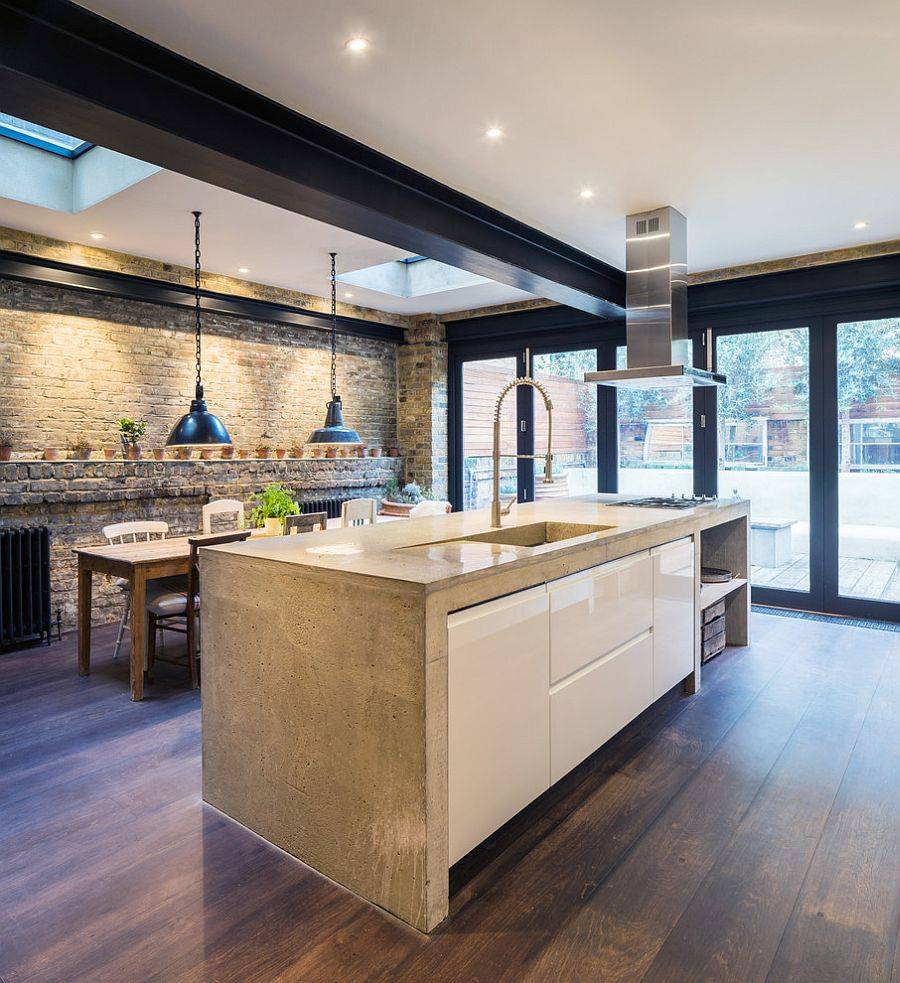 Настоящая кирпичная кладка идеально подходит для индустриальных стилей интерьера
